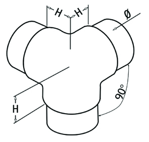 Art. 190D48 – Gomito a tre vie (Ø48,3×2,0) Aisi 304 sat.